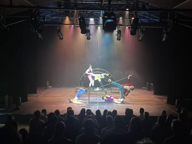 While there are traditional acts in the show, the blend between acts and performance beyond the stop start of traditional circus is so seamless you barely notice. Sycronised ball manipulation is mixed with dance and audience interaction. Even the silks act is stand out. Silks can be hard to make different unless you have complete and utter Olympic level mastery. It is always impressive, but here it is the artistry, choreography, music and dynamics that make the act. Two such different executions, from soft and flowing fast movement to robotic and speedy movement, as well as impressive feats of balance, really impress beyond and elevate the act.